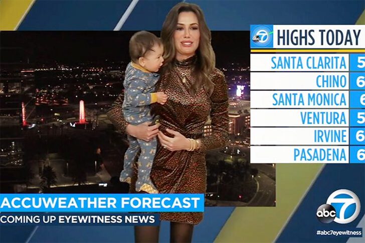 Während eines Wetterberichts auf KABC bekam Meteorologin Leslie Lopez 2021 überraschenden Besuch: Ihr zehn Monate alter Sohn Nolan lief plötzlich ins Studio und klammerte sich an ihr Bein. Statt aus dem Konzept zu geraten, hob Leslie ihn einfach hoch und moderierte weiter, als wäre es der normalste Teil der Sendung.