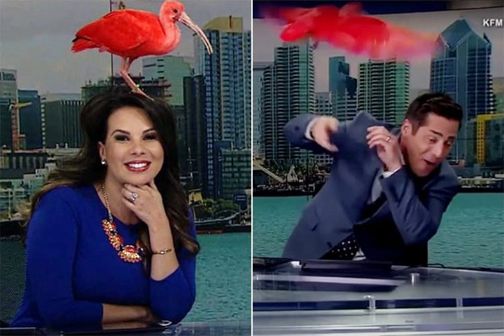 Chaos im Nachrichtenstudio von KFMB in San Diego: Während einer Live-Sendung 2018 tauchte plötzlich ein knallroter Scharlachibis aus dem San Diego Zoo auf und setzte sich ohne zu zögern direkt auf die Köpfe der Moderatoren. Die Szene wirkte wie aus einem Comedy-Sketch, doch Moderatorin Nichelle Medina blieb gelassen und führte den Beitrag weiter, als wäre tierische Co-Moderation völlig normal.