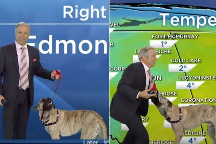 Bei Global Edmonton lief 2014 alles wie gewohnt, bis Hund Ripple beschloss, selbst Teil der Sendung zu werden. Während Moderator Mike Sobel gerade die Wetterkarte erklärte, sprang der energiegeladene Vierbeiner ins Bild, schnappte nach Aufmerksamkeit und ließ sich kaum bremsen. Mike versuchte weiterzumoderieren, während Ripple an ihm hochsprang, herumtänzelte und die Show praktisch übernahm.