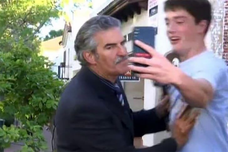 Bei einer Live-Reportage von KEYT 13 war der beliebte Journalist John Palminteri gerade mitten im Satz, als sich ein Zuschauer von der Seite ins Bild schob und sein Handy zückte, offenbar fest entschlossen, ein Selfie mit dem Reporter zu knipsen. John reagierte spontan aggressiv, schob den Mann zur Seite und setzte seinen Beitrag fort, sichtlich genervt von der Störung.