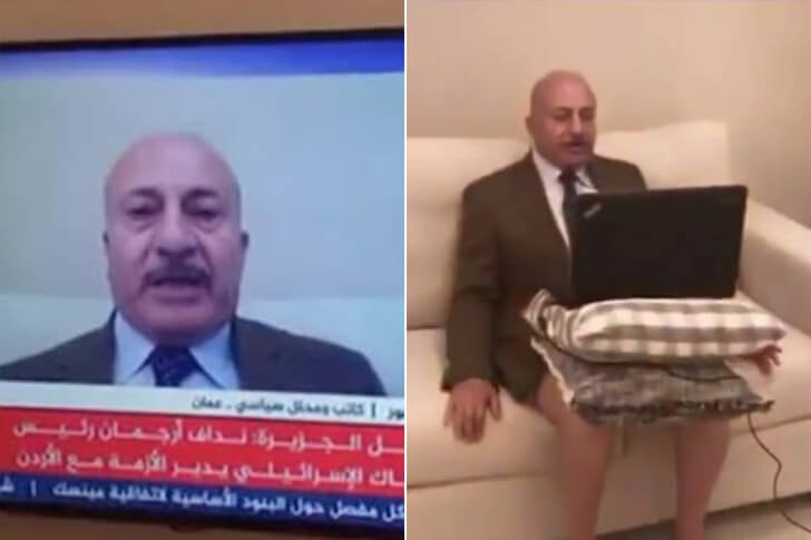 Für ein Interview bei Al-Jazeera hatte sich Politikanalyst Majid Asfour obenrum ordentlich herausgeputzt: Hemd, gepflegte Frisur, seriöser Blick – alles sah nach klassischem Studiogespräch aus. Nur unter dem Tisch herrschte ein völlig anderer Dresscode, denn statt einer Anzughose trug Majid gemütliche Boxershorts und machte es sich im Homeoffice so bequem wie möglich.