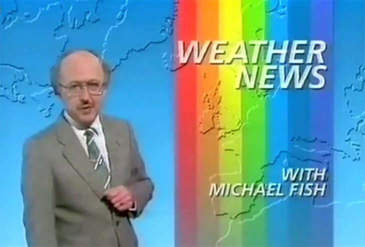 Mitte der 80er war BBC Weather fester Bestandteil jedes britischen Fernsehabends, und Mike Fish galt als eine der vertrautesten Stimmen dort. In einer Livesendung 1987 spielte er Hinweise auf einen möglichen schweren Sturm herunter und sagte, eine Frau habe sich wohl geirrt, alles sei  halb so wild, keine Panik nötig. Die Zuschauer könnten sich beruhigt zurücklehnen.