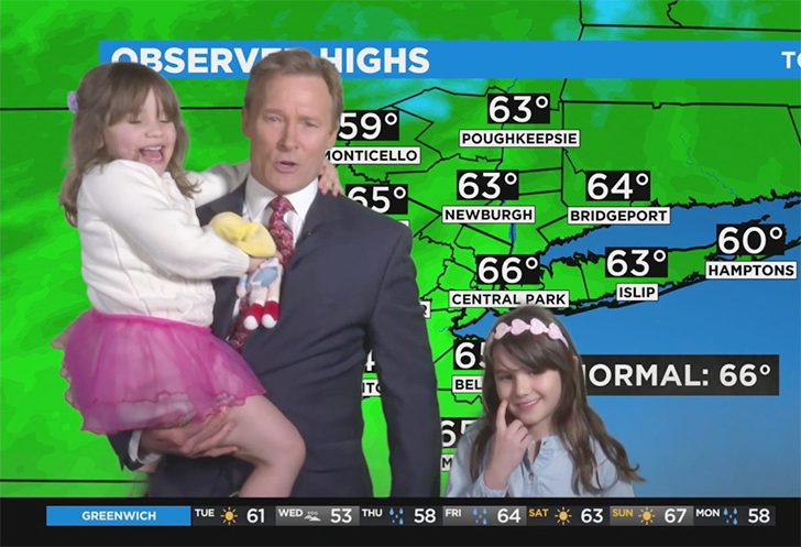 Meteorologe wird von seinen Töchtern überrascht